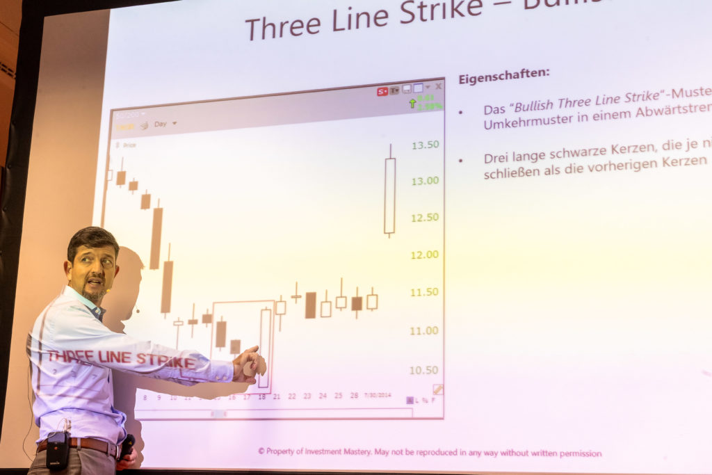 Sobald man weiß, wie es geht, will man es auch umsetzen. Deswegen bekommt man auf dem Seminar sowohl bewährte Trading-Techniken von Marcus de Maria persönlich als auch jede Menge Praxisbeispiele.